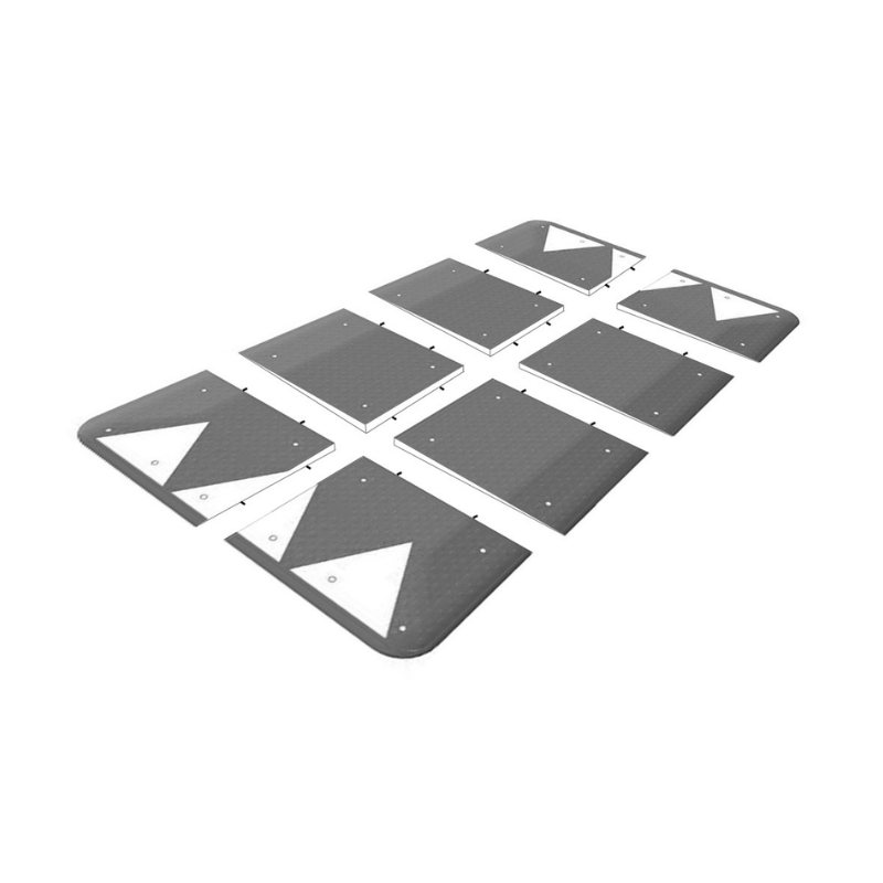 Coussin berlinois permet de ralentir le trafic des véhicules en zone urbaine. Les bus, autocars et vélos ne sont pas gênés par ce dispositif. Utilisés pour réduire la vitesse à 30km/h. Facile et rapide à l'installation. Conformes aux recommandations du CEREMA. Dents de requins réfléchissantes et réflecteurs. Livré clés en main avec fixations, liaison et cache trous.