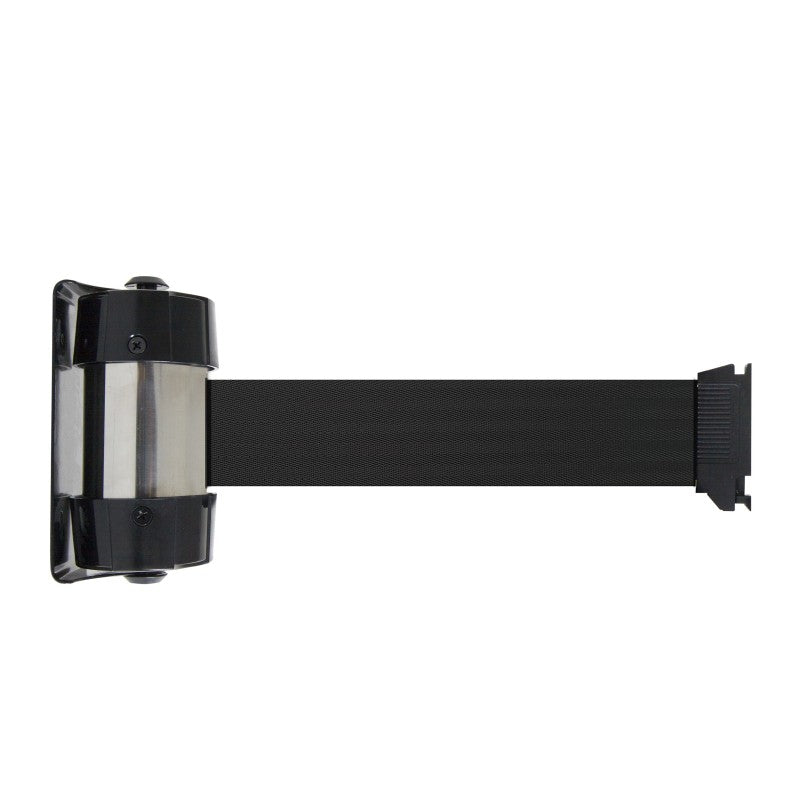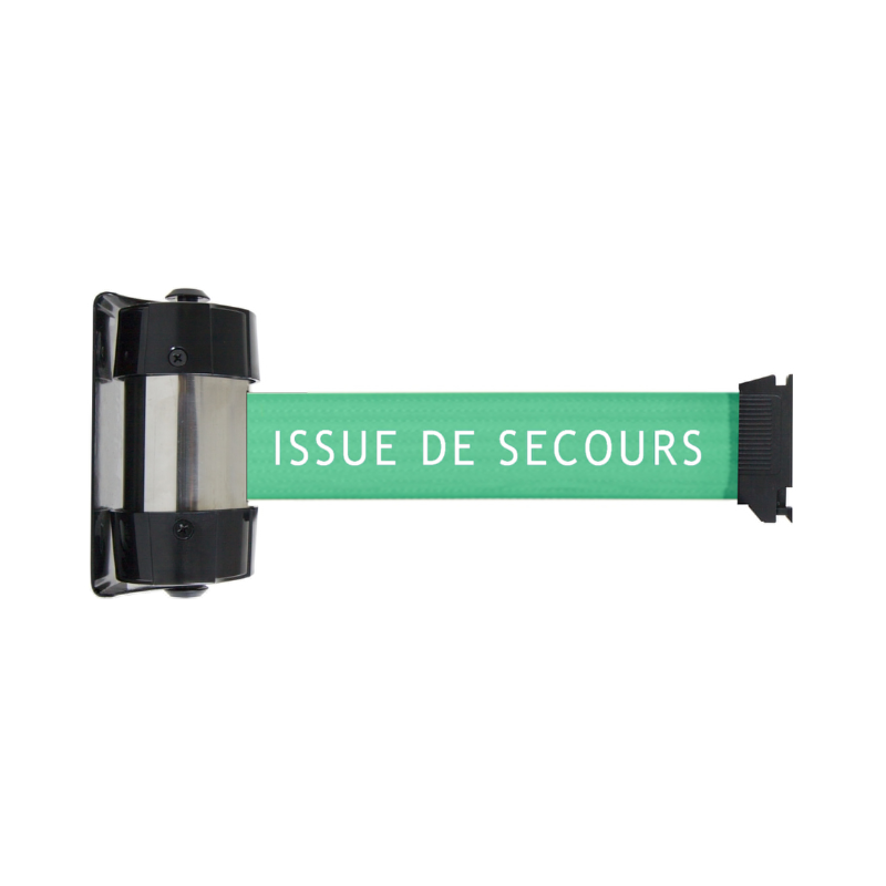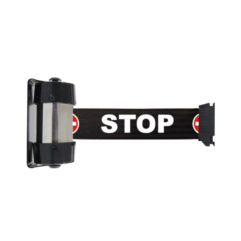 Enrouleur mural à sangle premium pour limiter facilement un accès à une zone. Sangle avec frein et dotée de la technologie anti-panique qui permet de décrocher automatiquement la sangle en cas d'urgence.