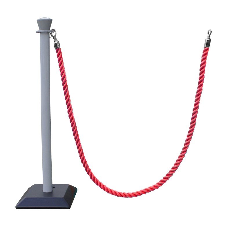 Kit de 2 poteaux de balisage premium avec 2m de corde permettant de délimiter un accès facilement de manière temporaire ou permanente. Base lestée avec du béton. Fabriqué en ABS et polypropylène.