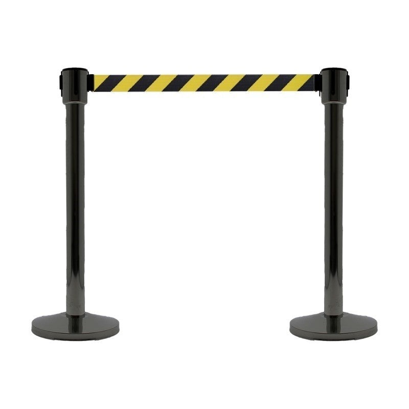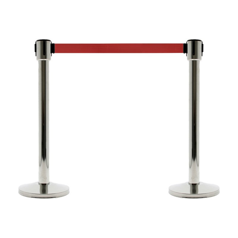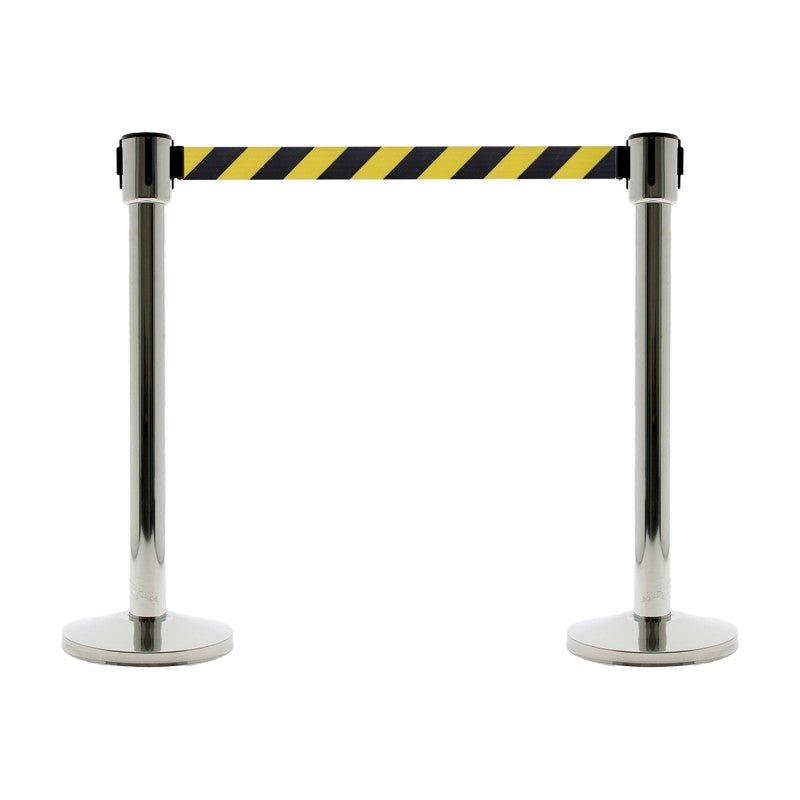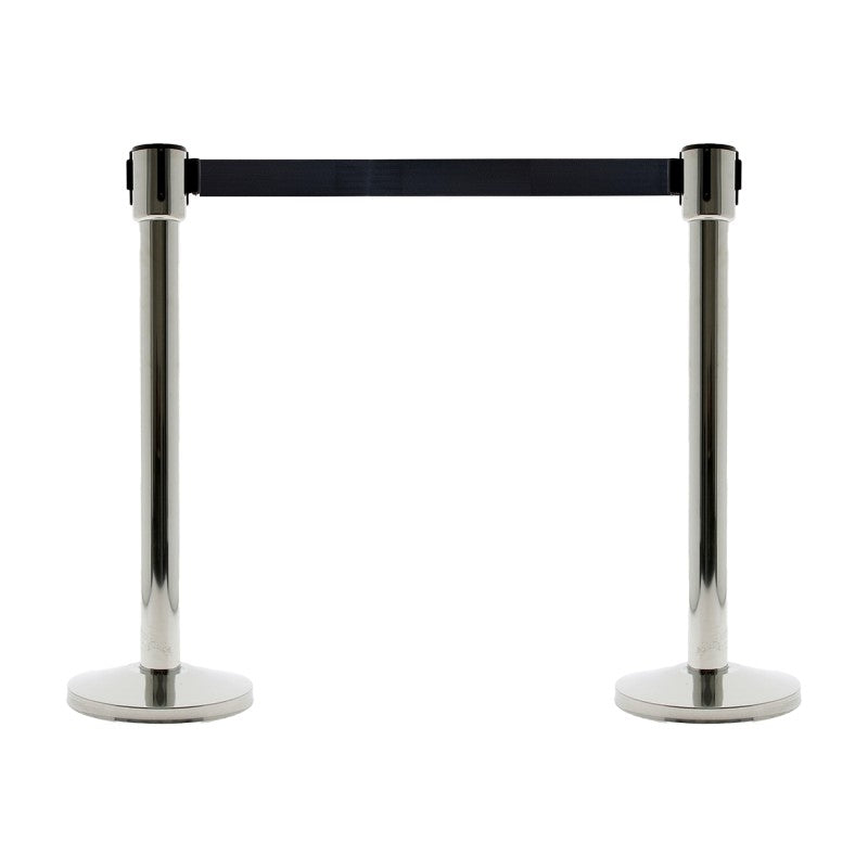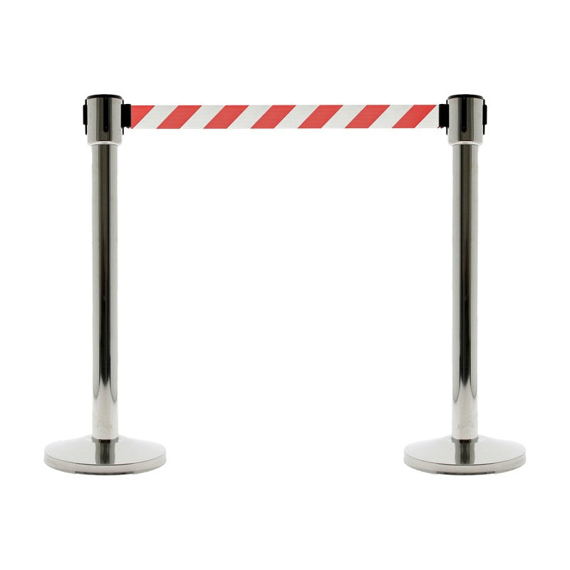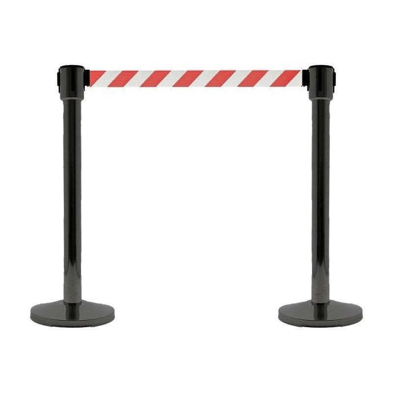 Poteau à sangle permettant de guider le public et de réguler le trafic. Le poteau possède une base lestée et une sangle de 10 m de longueur. La tête du poteau peut recevoir jusqu'à 3 sangles différentes. Usage intérieur uniquement. Un large choix d'option est disponible : panneau d'information et récepteur mural