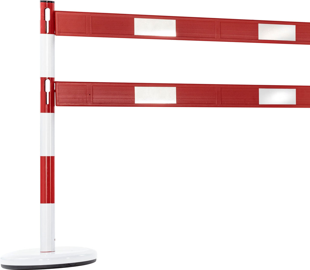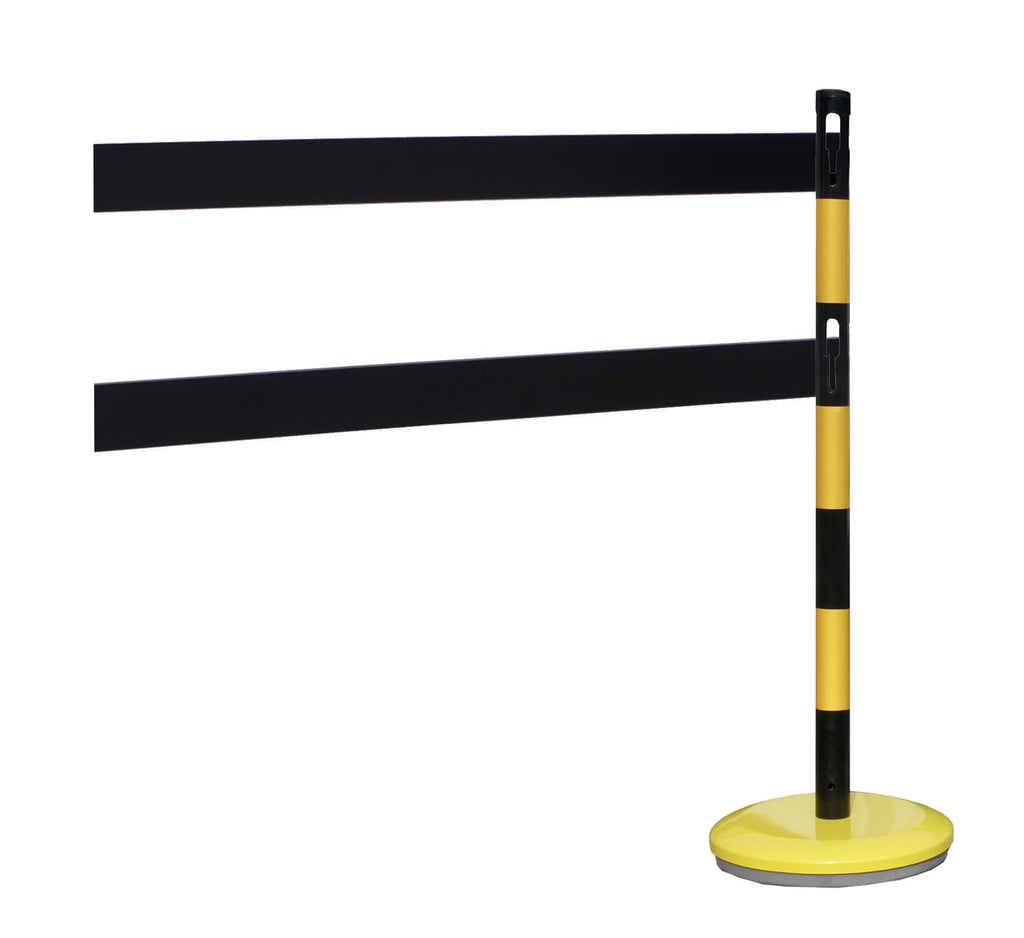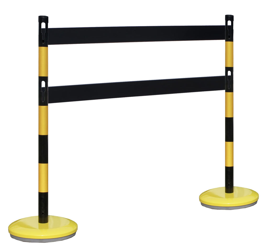 Kit de poteau acier avec 2 barrières permet de séparer et créer des zones d'accès. Très facile à installer. Poteau avec une base lestée. Possibilité de rajouter des extensions et des panneaux d'information.