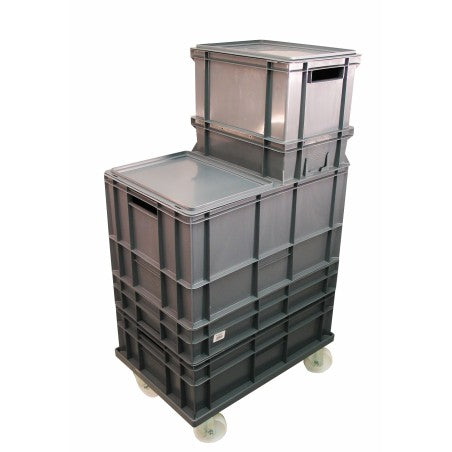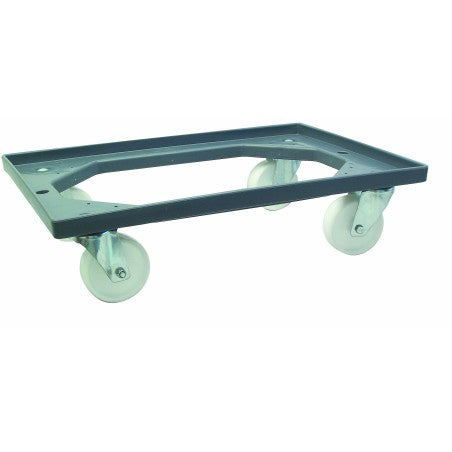 Plateforme à roulettes pour bacs de manutention qui facilite le déplacement des charges au quotidien, tout en réduisant les efforts physiques. Fabriquée en polypropylène robuste, elle offre une excellente résistance à l’usage intensif et aux environnements professionnels, avec une finition gris neutre qui s’intègre parfaitement aux espaces industriels, entrepôts ou zones de préparation.