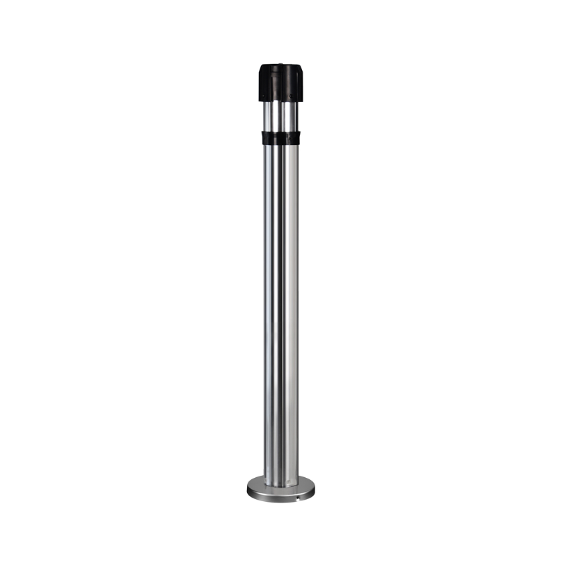Poteau pour accrocher une sangle permettant de guider le public et de réguler le trafic. La tête du poteau peut recevoir jusqu'à 6 sangles différentes et possède un trou fileté pour accrocher un panneau d'information. Usage intérieur uniquement.