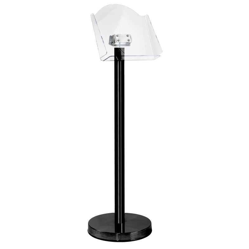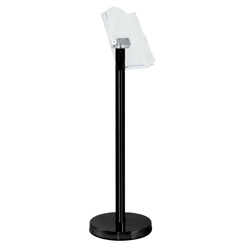 Poteau support catalogue avec base lestée permet de mettre à disposition de la documentation. Poteau fabriqué en acier, support catalogue en plexiglass. Usage en intérieur uniquement.