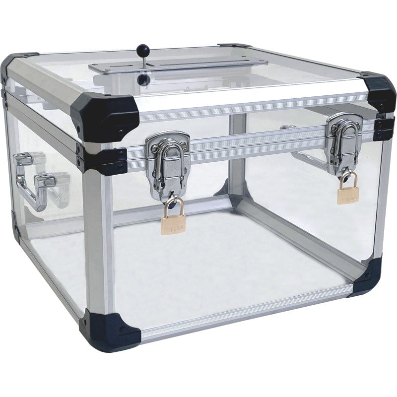 Fabriquée en PMMA résistant, cette urne est robuste, transparente et fiable, avec des coins renforcés pensés pour un usage intensif. Les deux poignées assurent une manipulation aisée, tandis que les charnières intégrées facilitent l’ouverture lors du dépouillement. Équipée de deux cadenas distincts fournis, elle garantit une sécurité renforcée du contenu, répondant aux exigences des environnements électoraux et institutionnels.